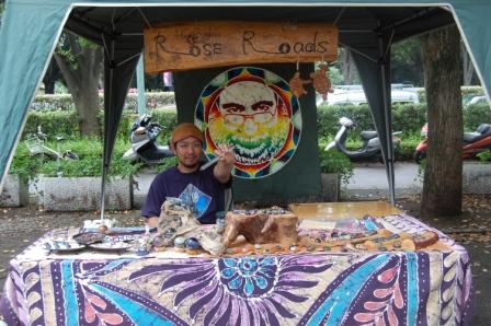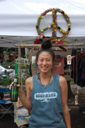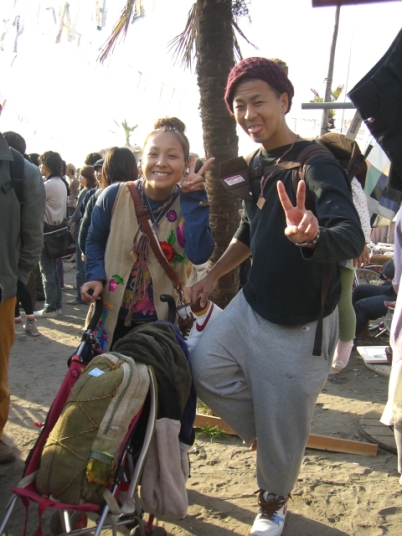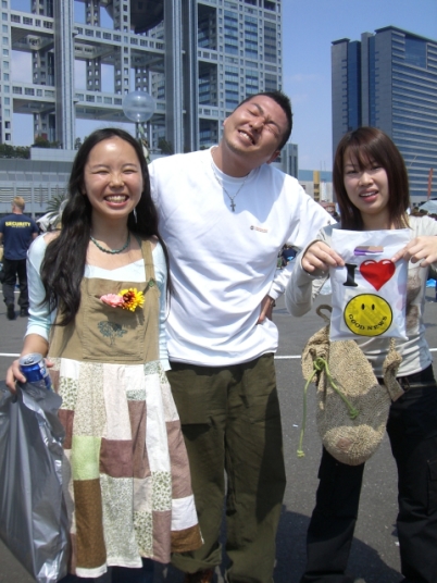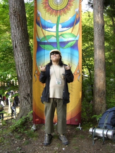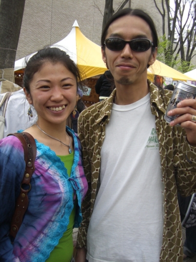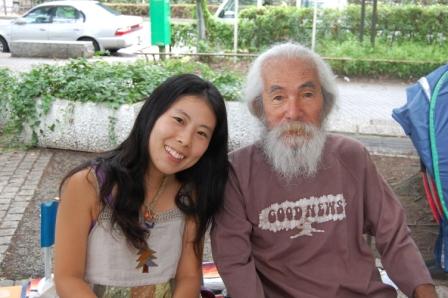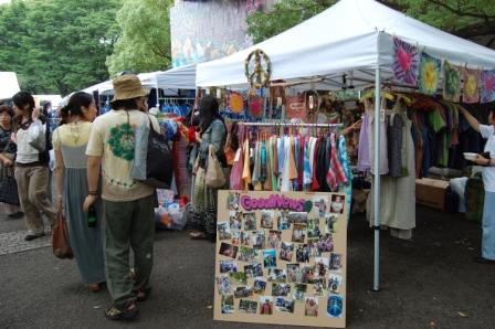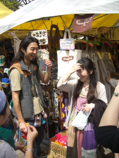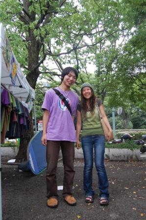 2007年 7月7&8日 アースガーデン 夏 @代々木公園 ![]() Thank you for coming ! ご来場頂いた皆様、本当にありがとうございました。 予報を反して、雨に降られず とっても楽しい2日間になりました。 すごい数の出店のなか、GoodNewsを探して遊びに来てくれた方 本当にありがとうございました。 皆との再会が、最高に良い刺激になります。 今回はお店の後方にゴザ&ちゃぶ台をおきリラックススペースをつくりました。 皆、良い感じに楽しんでくれて大満足!(楽しすぎて倒れた人1名) 代々木公園最高! 今回のスペシャルは七夕の夜に行われた詩人ナナオサカキ氏によるポエトリーリーディング 彼は地球を家とし日本と世界各地を放浪し続けている大正生まれのフーテン詩人。 日本のヒッピームーブメントの中心人物でもあります。 私にとってナナオさんのポエトリー初体験は、 2000年アメリカのビート詩人でエコロジストのゲイリースナイダーが来日した時。 湯島聖堂で行われたポエトリーライブに友人でもあるナナオさんも出演していてひとめぼれ! 宇宙的な物事のとらえ方と歌っているような言い回しがとてもおもしろく、 もちろんルックスもかなりかっこよくその時すぐにファンになってしまいました。 それ以来、何度か機会があれば彼のポエトリーに足を運び、 彼の詩の世界に浸っては地球の事や人間のことを考えていたのでした....。 今回はそんなナナオさんに少しお話しを聞いてみました。 (GoodNews) ナナオさん、こんにちは! 昨日はポエトリーとってもおもしろかったです! 今、お時間あればインタビューさせてもらえませんか? (ナナオさん) え? ボクに? どうぞどうぞ! ありがとうございます。 では、まず......。 尊敬してる人はいますか? いないっ! 笑! そーですか。それでは今後やってみたいことはありますか? あるある! たくさんあるよ! 例えば南太平洋をヨットで歩き回りたい。 僕はグライダーとヨットが得意で日本海をヨットで散歩してるよ。 僕のともだちで神戸からトンガまでヨットで行った人がいるんだ。 それからアラスカを丹念に歩きたい。 今までは海岸線をとくにずっと歩いたものだよ。 アリューシャン列島のアンカレッジに友達がいるから彼のところにもまた行きたいなぁ。 ナルホド.....。あの〜今、85歳でいらっしゃいますよね?ど〜してそんなに元気なんですか? まだ84だよ!どーしてって...。確かに他の老人よりは元気かもなぁ。 「グチを言わない! 言うヒマがないっ!」 大事ですね。私も心がけます。 では好きな食べ物は? 何でも好きだよ! 特にかぼちゃ、じゃがいも.......あとは野草はおいしいね。 長寿の秘訣は野草かな? 今度試してみます。 では好きな音楽は何ですか? 音楽もほんとに幅広く色々聴いてるよ。 ジャンセバスチャンからバッハ、グレゴリアンチャント、それから古代の音楽。 モンゴルへ行ったこともあってモンゴルの古い音楽、インドの古典音楽なんかも好きだよ。 では好きな国はどこですか? 国は全部嫌いっ!!! 国なんてない方がいいよ。 あっても迷惑! パスポートもいらないっ! そうですね!本当にそうですね!いつか国境がなくなったらいいですね! では最後に若者にメッセージをお願いします。 くたびれるな! 俺のようになれ! パチパチパチ(拍手)! ありがとうございました〜。 お礼にGoodNews Tシャツをプレゼントしたらとっても喜んでくれました。 いつまでもお元気で! |