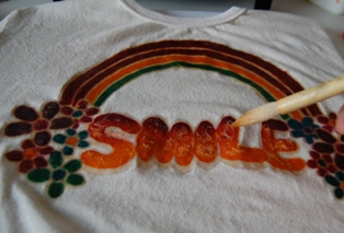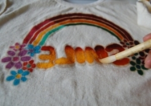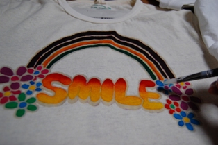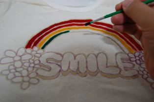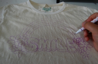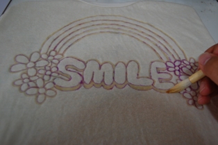 1.Tシャツに下絵を描く (水に濡れると消えるチャコペン使用) Let's draw your rough sketch with air soluble marker. |