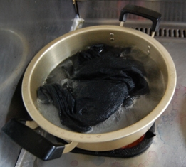 10.染め終わったらグツグツ煮ます After dye, boil it |