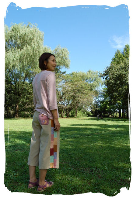 両脇に細めの2本ラインのパッチワークが入ります。