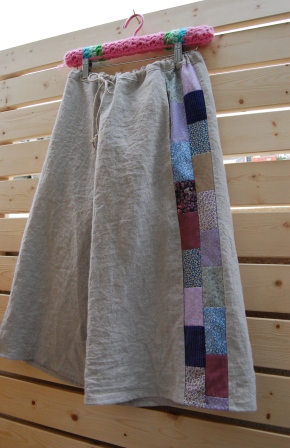 SIZE (S) ウエスト 85 cm (M) ウエスト 89 cm (L) ウエスト 93 cm ファスナー等なくウエストでヒモを結んで調節するタイプです。 ウエストサイズ表示は一番広げた状態を記入してあります。 ☆ヒップがウエスト部分を通れるサイズをお選びください。 (例 : ヒップ87cm → Mサイズ) 丈 ウエストから 約 70cm(好きな長さに変更可能です。) |