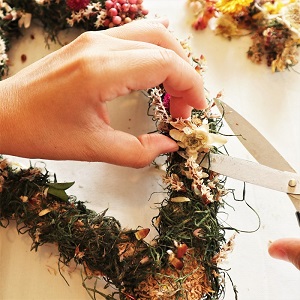 つけるものはドライフラワーの他に、木の実、貝殻、羽根、