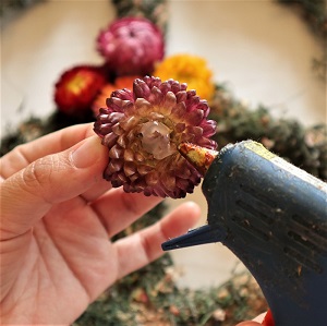 ★ リースの中心 (一番目立つところ) から つけはじめるとバランスよく仕上がります。